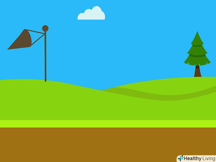Запускайте бумеранг навколо вітру. щоб кинути Бумеранг" навколо " вітру, необхідно запустити його в праву сторону від того напрямку, звідки дме вітер, і тоді він повернеться до вас зліва (або навпаки, якщо ви лівша). Слід кидати бумеранг під кутом 45-90 градусів вліво або вправо від зустрічного вітру. [10]- Щоб з'ясувати напрямок вітру, зірвіть пучок трави або жменю листя і підкиньте в повітря. Якщо листя або травинки полетять вправо, вам буде необхідно повернутися до вітру вліво і навпаки. [11]