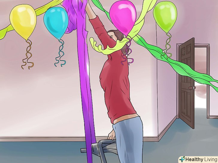 Прикрасьте вечірку. прикраси роблять атмосферу святковою і веселою, а також викликають посмішки у гостей. Продумайте тему вечірки, щоб визначитися з прикрасами. Підберіть кольорові скатертини, прикрасьте вхідні двері і розвішайте мішуру, щоб миттєво перетворити вечірку. [10]- Влаштуйте гавайську вечірку, так як це популярна Літня тема і в багатьох магазинах ви зможете відшукати відповідні тематичні прикраси.