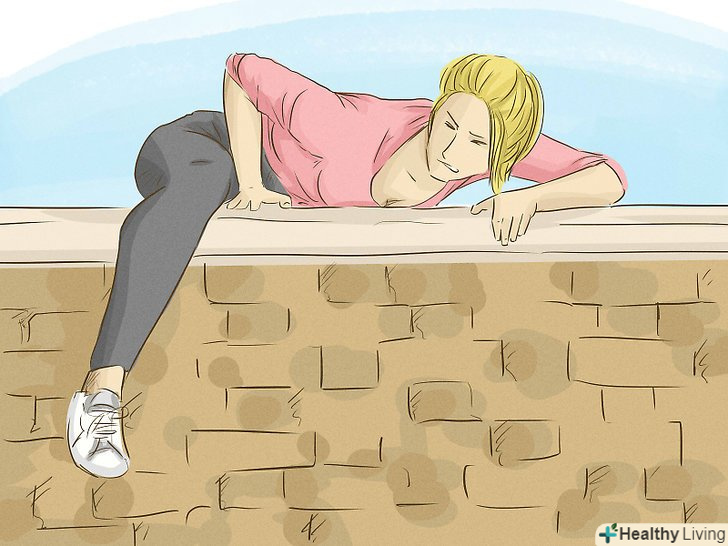 Підніміться на вершину. коли ви підтягуєтеся до вершини стіни, відштовхніться задньою ногою і підніміть верхню частину тіла до вершини стіни. Продовжуйте цей рух, поки ваш центр ваги (в нижній частині тулуба) не підтягнеться до краю стіни.
