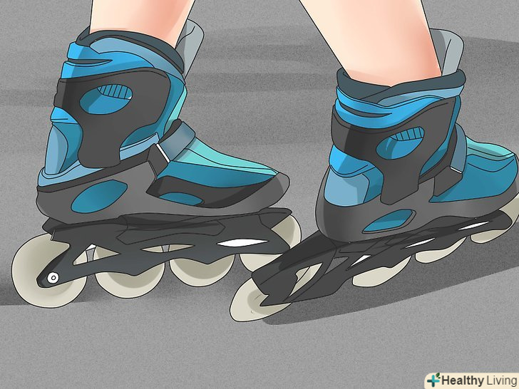 Знайдіть зручну пару ковзанів. майже у всіх спортивних магазинах ви зможете співвіднести розмір свого взуття з відповідними парами ковзанів. Роликові ковзани повинні бути дуже зручними, вертикально скріпленими у ваших щиколоток без доставлення незручностей. Важливо уникати ковзанів, які легко розв'язуються. Це може запросто стати причиною пошкоджених щиколоток.- Роликові ковзани бувають різних видів: універсальні, швидкісні, вуличні та спортивні, а також спеціальні навчальні ковзани. Звичайні ковзани універсального використання підходять для початківців. Приміряйте кілька різних пар, перевіряючи в яких найзручніше.