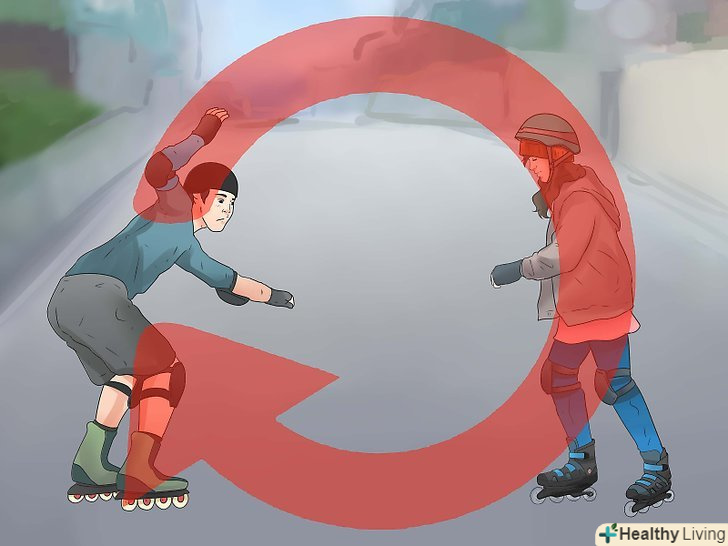 Будьте обережні. як людина, що катається на ковзанах, ви зобов'язані бути попереджувальними по відношенню оточуючих вас людей. Постарайтеся не заважати людям, що гуляють поруч з вами в парку, і їх дозвіллю своїм катанням на ковзанах. Запам'ятайте наступне:- Весь час стежте за пішоходами, маленькими дітьми і колясками, людьми, які, можливо, не помітили вашу присутність, а також за велосипедистами і будь-якими несподіванками навколо себе.