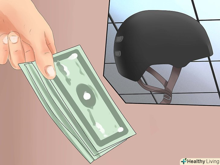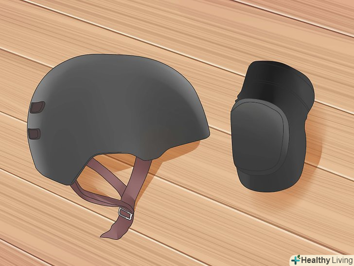 Купуйте відповідний шолом. ніколи не катайтеся на роликах без шолома. Він необхідний для захисту вашої голови під час падінь. Одягніть світловідбиваючу стрічку, щоб водії помітили вашу присутність на дорозі при поганій видимості. Купіть шолом з прикріпленими на ньому правилами техніки безпеки.- Шоломи повинні бути сертифіковані комісією з визначення безпеки споживчих товарів і повинні щільно прилягати до голови. [1]