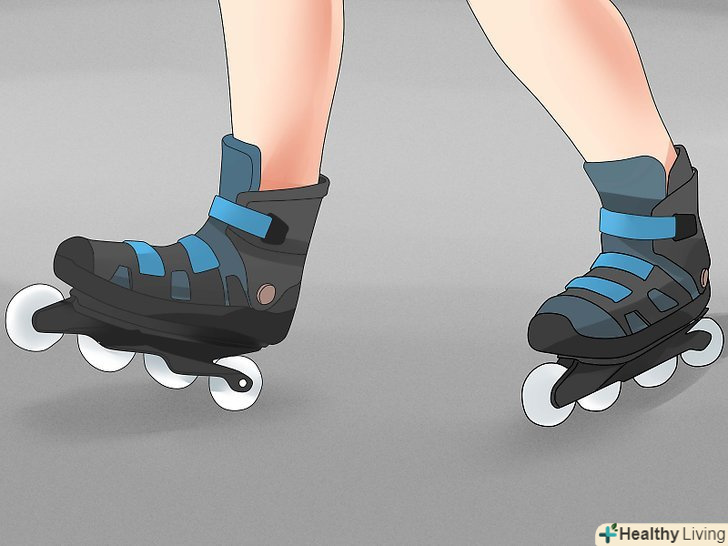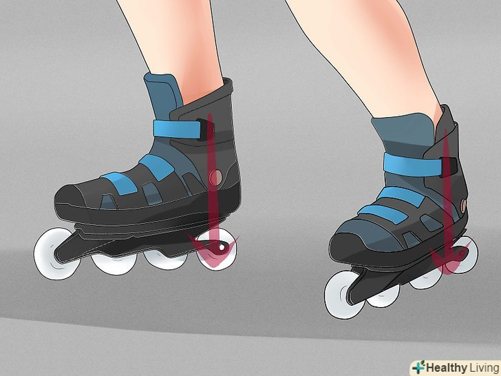 - Коли Вам стане досить зручно, можете повертати ваші щиколотки всередину або назовні, роблячи V-подібну форму, або ж поставте одну ногу перпендикулярно інший для отримання форми літери Т.ця техніка широко застосовується в фігурному катанні і дозволяє використовувати п'яти в якості гальм для уповільнення.