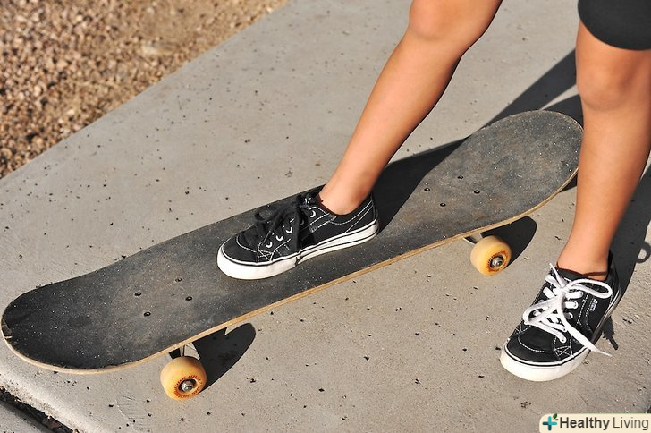 - Завжди надягайте щитки на ноги, перед тим як встати на скейтборд.