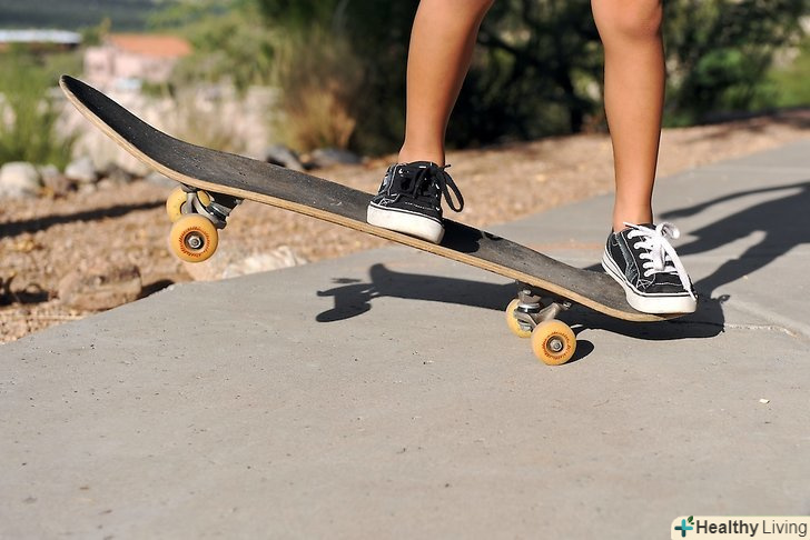 Для початку покладіть скейт на килим і спробуйте на нього встати. Якщо у вас немає можливості займатися зі своїм скейтом вдома, спробуйте зробити це на траві. Тільки тримайтеся за що-небудь, адже зараз головне лише відчути скейтборд.