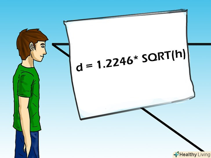 Обчисліть відстань в милях, підставивши в наступну формулу висоту h (в футах) від землі до ваших очей: d = 1.2246 * квадратний корінь (h)