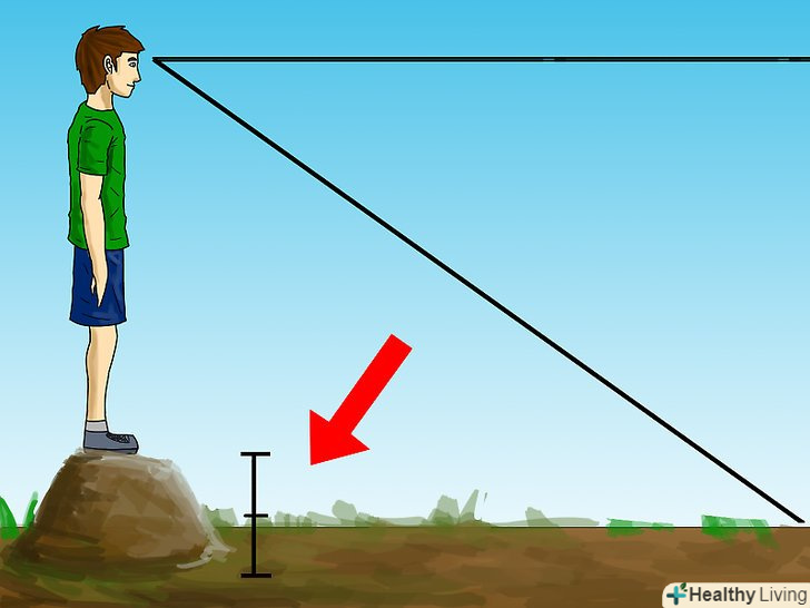Виміряйте "висоту очей". виміряйте висоту від землі до ваших очей. Один із способів зробити це-виміряти відстань між очима і верхньою частиною голови. Відніміть це значення з вашого зростання і ви отримаєте висоту від поверхні Землі до ваших очей. Якщо ви стоїте на рівні моря, то це єдиний вимір, який потрібно провести.