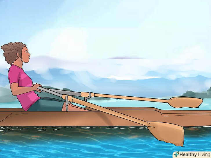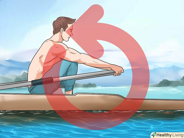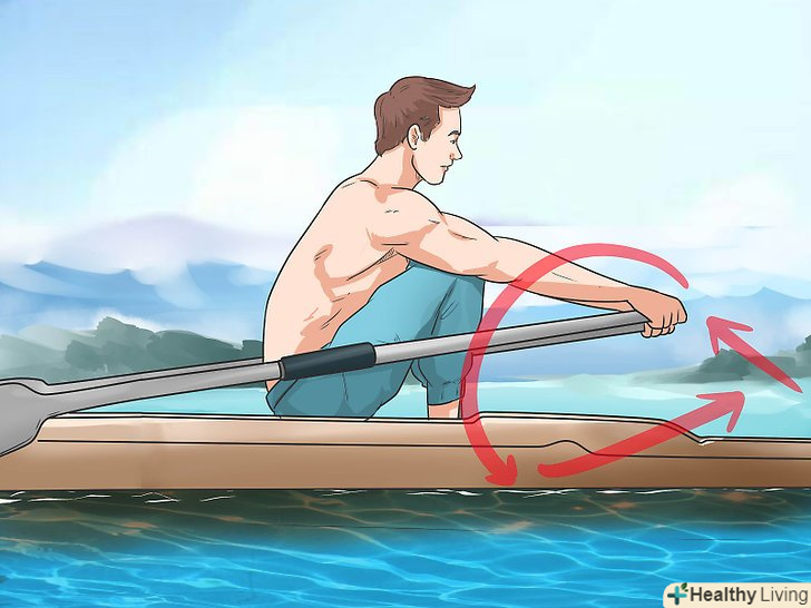 Використовуйте ті ж самі рухи, що і на гребному тренажері. якщо ви веслуєте в човні, яка дозволяє вам випрямляти ноги і відштовхуватися на своєму сидінні назад при здійсненні гребка, то ваші рухи зовсім не будуть відрізнятися від того, що ви робили на тренажері. Якщо ж човен не дозволяє випрямляти ноги, користуйтеся тими ж рухами рук і відхиляйтеся корпусом назад в стадії проводки весла по воді, щоб хоча б частково використовувати силу власних ніг.- При відсутності можливості випрямляти ноги, коли ви тягнете весла на себе, стежте за тим, щоб навантаження йшла на плечі і торс, а не на спину. Проте, навіть в цьому випадку на верхню половину тіла розподіляється тільки частина всього навантаження. Тому вам необхідно намагатися максимально використовувати силу ніг і нижньої половини тіла. Це означає, що в роботу для підвищення потужності веслування слід включати сідничні м'язи і стегна.