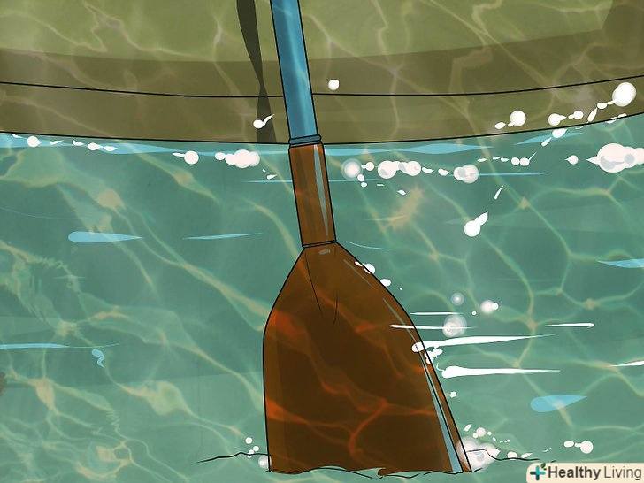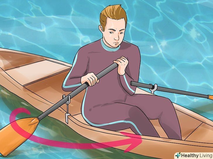 Користуйтеся одним веслом, щоб повернути човен. якщо вам необхідно повернути човен, просто скористайтеся одним веслом замість двох. Коли потрібно виконати поворот, наприклад, вліво, ви будете користуватися веслом у вашій лівій руці і докладати зусиль лише до цього весла. В результаті, човен поверне в ліву сторону. [12]- Якщо потрібно зробити поворот з невеликим радіусом, опустіть одне весло лопаттю в воду, а працюйте іншим веслом. Наприклад, якщо ви повертаєте праворуч, опустіть ліве весло в воду і тримайте його нерухомо в такому положенні, а гребіть правим веслом.