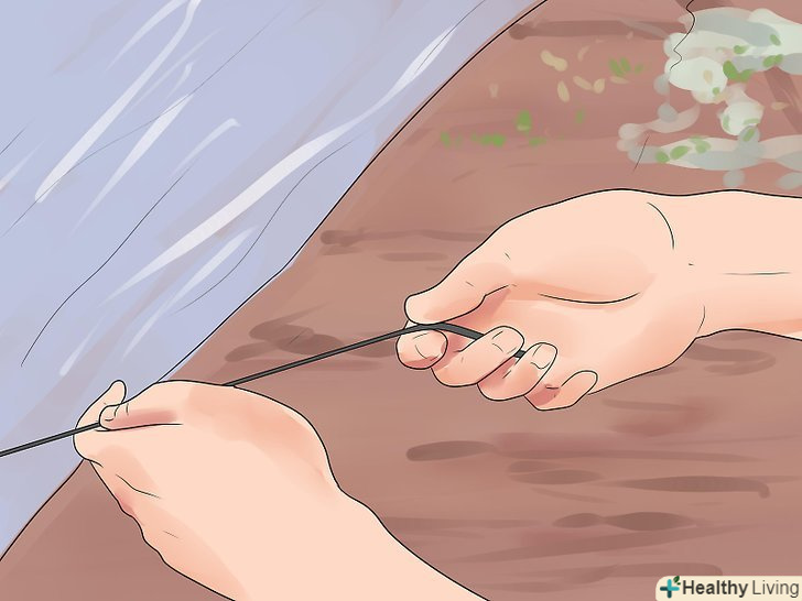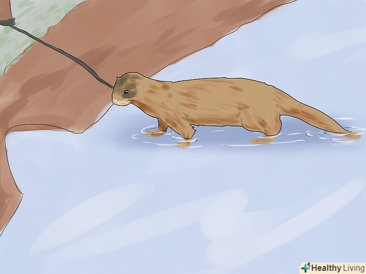 Встановіть якір глибоко під воду. якір повинен бути досить глибоко, щоб повністю занурити нірку. Як якоря використовуйте важкий предмет, наприклад, камінь або кол.вставте якір в потік або русло річки, щоб він лежав там міцно і надійно. Він повинен бути досить важким, щоб норка не могла його зрушити і звільнитися. [6]- В середньому кілок повинен знаходитися у воді на глибині 30-45 см.