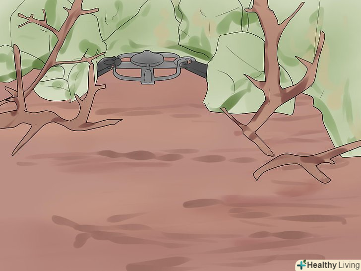 Виройте неглибоку яму. встановіть капкан в ямку і щільно притисніть до землі. Злегка прикрийте його листям, травою і землею. Якщо пастка мокра, зіштовхніть її в воду, тримаючи на поверхні води.- В якості сухої прихованої пастки відмінно підійде однопружинні прохідний капкан No. 110.