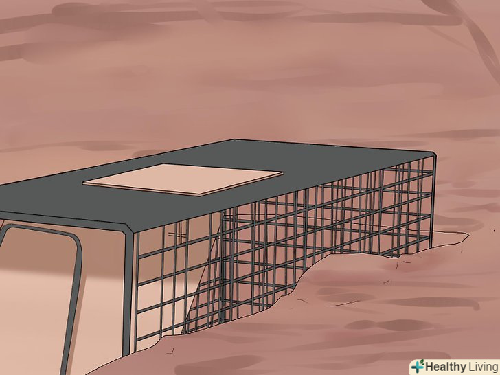 Замаскуйте клітку. накрийте клітку прилеглою рослинністю і сміттям (гілками і листям), щоб вона була схожою на нору. Засипте підставу клітини землею, листям, гілками та іншим сміттям, щоб приховати педаль. Якщо можете, оберніть клітку в щось темне, наприклад, в ковдру.