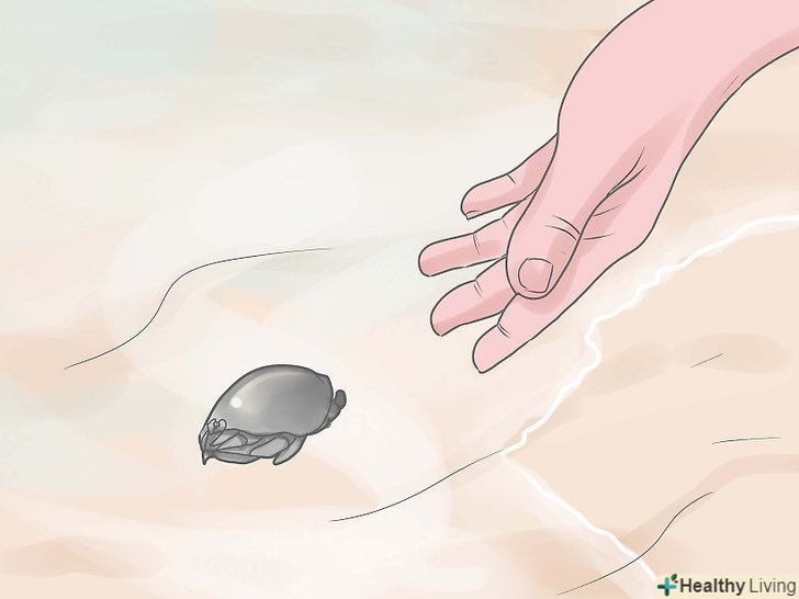 Помітивши плаваючого краба, візьміть його обома руками. пісочні краби можуть дуже швидко вислизнути і заритися в пісок, тому покваптеся.- Вдосталь надивившись на краба, відпустіть його назад у воду. Дикі тварини не люблять проводити час у полоні, а пісочний краб є дуже диким.