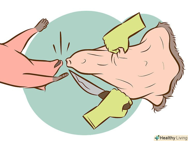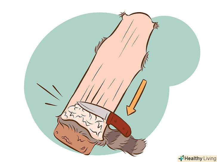 - Для самців вам доведеться, відрізати геніталії від тіла ножем. Вони залишаться приєднаними до хутра, і ви зможете видалити їх пізніше під час процесу очищення шкіри від м'яса і розтяжки.