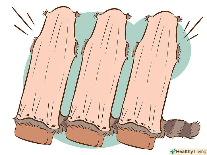 - Шкуру слід розтягнути у формі морської зірки, всі кінцівки і хвіст повинні бути тугими і розтягнутими. Не дозволяйте лапам висіти вільно, або шкура буде виглядати неправильно.