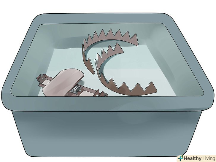Почистіть капкан. Перед вощенням капкана Ви повинні переконатися в тому, що він чистий від бруду, крові, іржі та інших забруднень.- Зніміть забруднення в гарячій воді з милом. Ретельно обполосніть капкан.