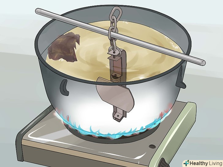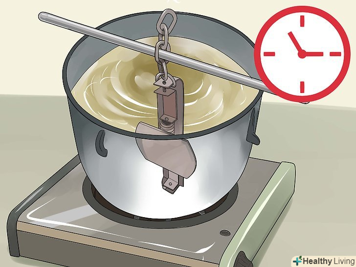 Протягніть металевий прут через кільце ланцюга капкана. Прут повинен бути в змозі витримувати вагу капкана.- Виберіть прут такої довжини, яка буде трохи більше діаметра каструлі для вощіння. Вам буде необхідно покласти його поперек каструлі, надійно сперши на краю.