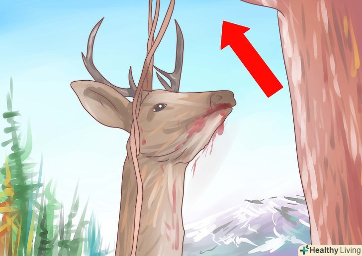 Зав'яжіть мотузку на шиї (або на рогах, якщо ви хочете зробити з оленя Опудало). Перекиньте другий кінець через гілку дерева на фут або два вище голови.