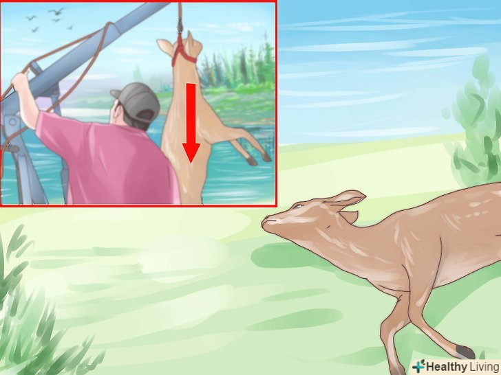 Підніміть оленя над землею так, щоб задні копита ледь торкалися землі. це можна зробити вручну або за допомогою автомобіля.