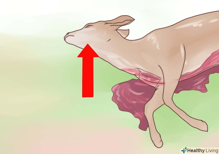 Покладіть оленя назад на живіт, розсунувши передні і задні кінцівки на кілька хвилин, що дозволить йому підсохнути. Хитрість полягає в тому, що голову потрібно підняти за роги (або вуха) вище – це дозволить рідини стікати; зайва кров стече через грудну клітку.