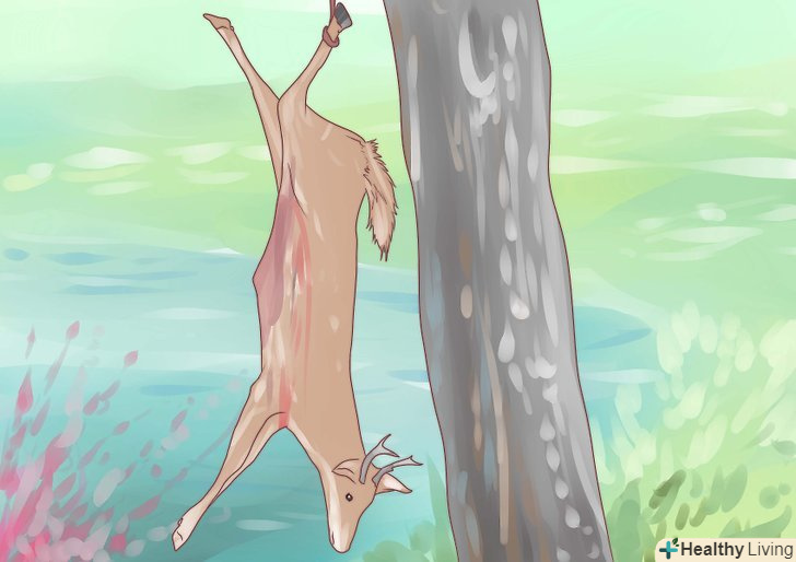 Якщо у вас є мотузка і неподалік стоїть дерево, ви можете прив'язати оленя за задні кінцівки під кутом, що дасть вам більший доступ до нутрощів для оброблення. або, якщо у вас є партнер з полювання, він допоможе вам, тримаючи кінцівки.