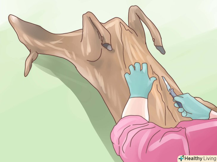 Почніть обробку з промежини, поки не дійдете до грудини, якщо ви збираєтеся зробити опудало з голови. в іншому випадку надріз слід робити уздовж ребер з боку грудини.