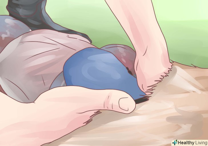 Визначте, де знаходиться грудина. ви зможете знайти її, промацуючи грудну клітку в тому місці, де вона закінчується, утворюючи букву V біля основи грудей над животом.
