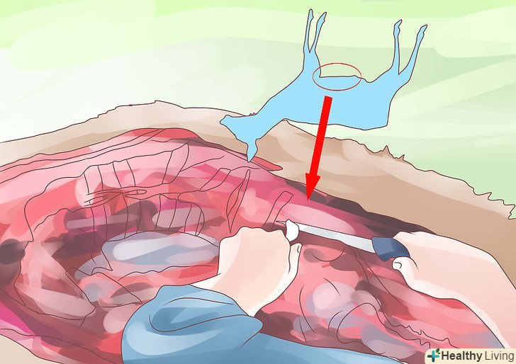 Переріжте діафрагму оленя. якщо ви прострелили оленю серце/легке – будьте готові побачити кров; при необхідності можна покласти оленя на живіт і почекати кілька хвилин, поки вона не витече.