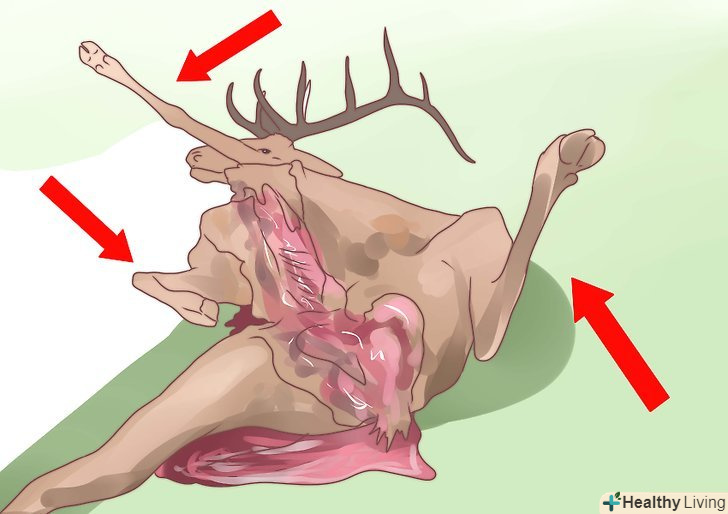 Як тільки ви переконалися, що олень мертвий, надіньте рукавички для того, щоб уникнути контакту з мікроорганізмами.