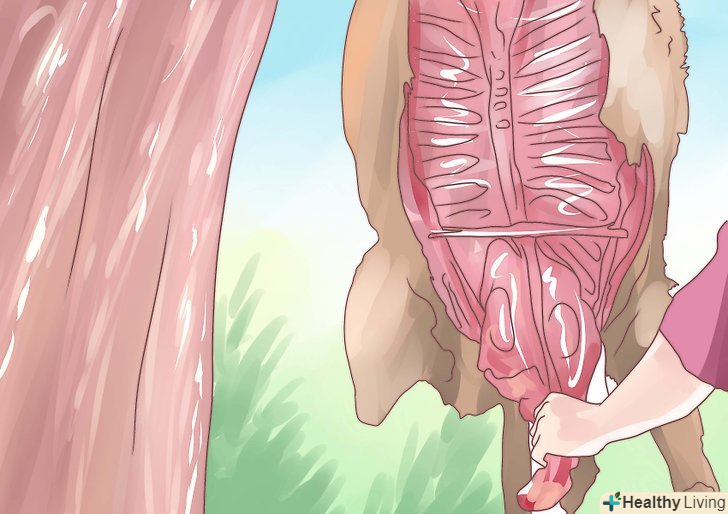 Знайдіть останні мембрани, що тримають кишки всередині туші, перерізайте їх і витягніть кишки.