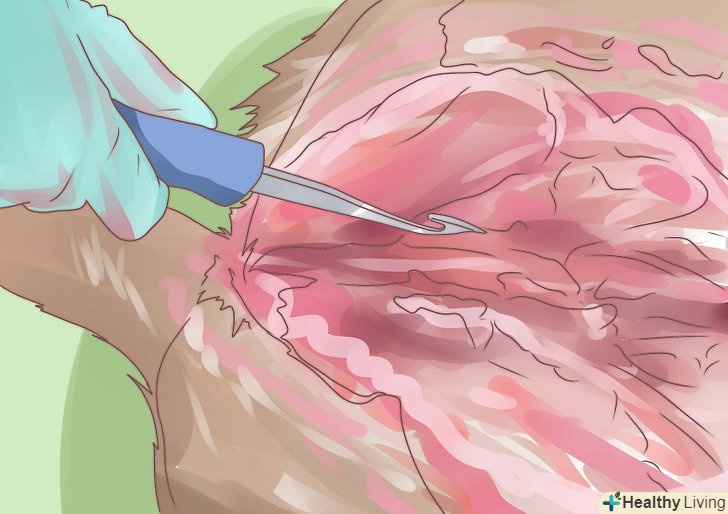 Робіть, як написано вище: слід видавити фекалії з кишечника, вирізаючи і перев'язуючи його. Також будьте обережні з сечовим міхуром.