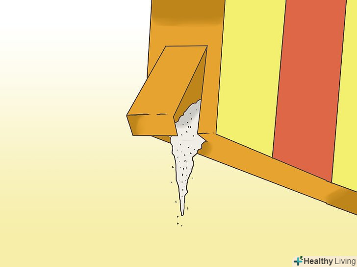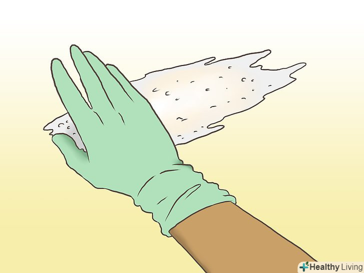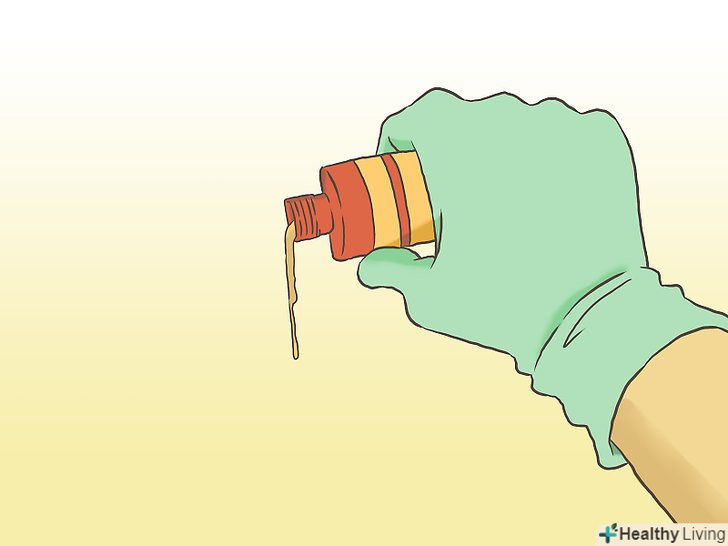 Дублення шкури. висипте сіль у відро і залийте її 7,6 літрів окропу. Додайте розчин з висівками і розмішуйте до тих пір, поки сіль повністю не розчинитися. Потім, додайте акумуляторну кислоту (електроліт). Покладіть шкуру в відро і утрамбовуйте її палицею, поки вона повністю не зануриться в рідину. Нехай настоїться протягом 40 хвилин, а після - витягніть шкуру з розчину і дайте їй просохнути.- Переконайтеся, що ви одягли рукавички і вжили інших запобіжних заходів, щоб уникнути опіків при роботі з акумуляторною кислотою.
