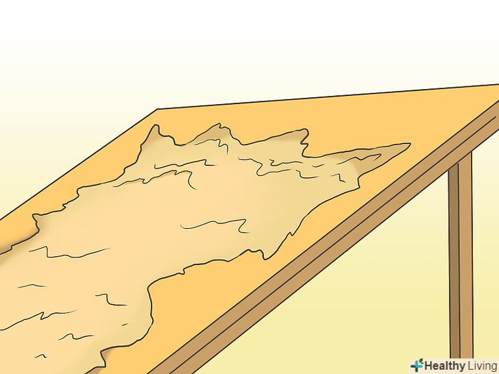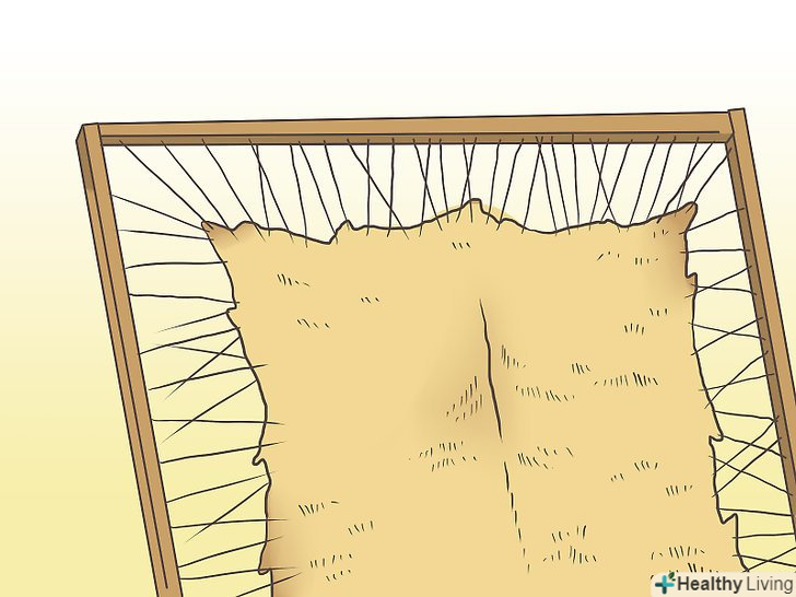 Дайте шкірі просохнути. перш ніж почати вимочувати шкіру в дублячому розчині, розтягніть шкіру на спеціальному настилі для сушіння і дайте їй просохнути кілька днів.- Настил для сушіння ви можете придбати в господарському магазині. Ці дерев'яні конструкції дуже корисні для розміщення шкури на час сушіння.