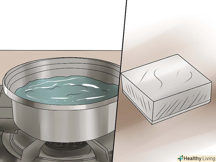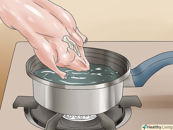 Розігрійте воду і парафіновий віск, щоб вмочати туди птахів і видаляти пух. Закип'ятіть достатню кількість води у великому горщику, в який ви будете занурювати качку, і розчиніть в ньому блок парафінового воску – його можна знайти майже у всіх продовольчих магазинах та інших торгових точках. У гарячій воді він повинен тонким шаром спливти на верхівку. Коли ви будете готові, зніміть воду з вогню.- Використовуйте одну упаковку або блок парафінового воску на кожну качку. Швидше за все, вам не доведеться доводити воду до кипіння, щоб розчинити віск, так що уважно за ним стежте. Коли віск розчиниться, вода буде готова до використання, і ви можете починати занурювати туди своїх птахів.