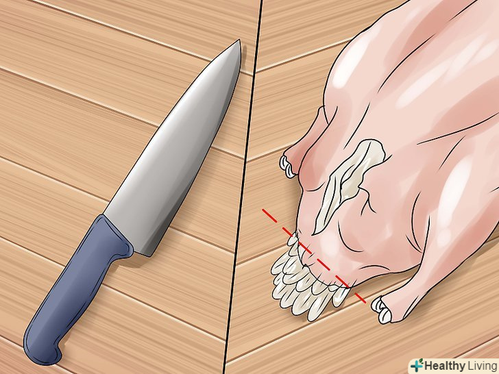 Відріжте ноги кусачками. почніть відрізати обидві ноги якомога ближче до тіла, використовуючи кліщі-кусачки або гострий ніж. Зазвичай найкраще використовувати інструмент, що працює за принципом ножиць, щоб ви могли швидко і акуратно їх відокремити.- Деякі люди викидають ноги, але ви можете не викидати їх, а використовувати для приготування бульйонів і відварів, якщо ви хочете проявити особливу винахідливість.