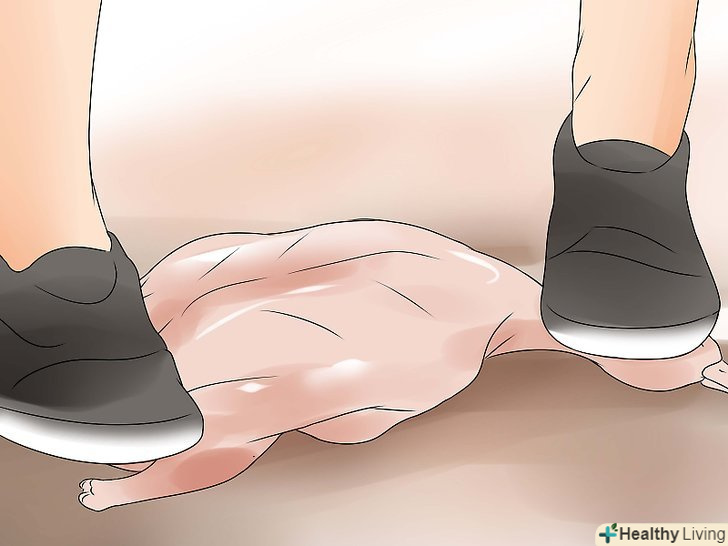 Наступіть однією ногою на голову, інший – на ноги качки. Тримайте качку на місці своїми ногами, поставивши одну ногу на її шию, іншу – на її ноги. Вам буде потрібно витягнути назовні грудинку і залишити на землі іншу частину качки; вам буде легше, якщо ви будете тримати відходи на місці своїми ногами.
