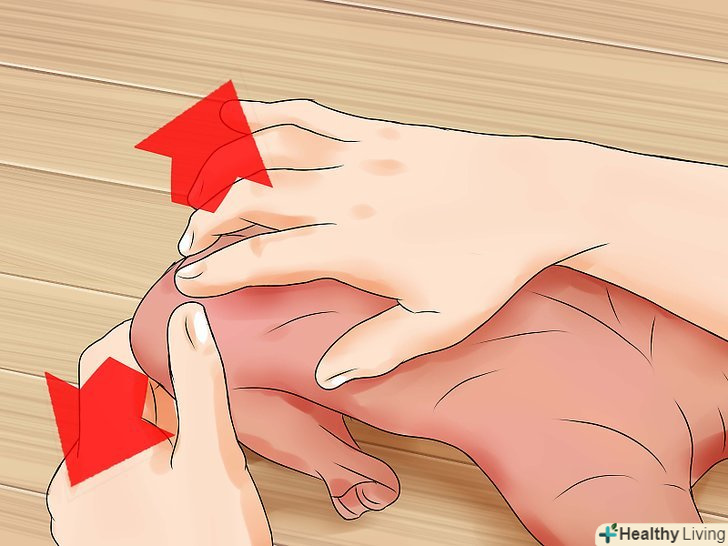 Підчепіть грудну кістку двома пальцями – зверху і знизу. підчепіть двома пальцями однієї руки грудну кістку, яка знаходиться поруч з вилочкою у напрямку до шиї качки. Двома пальцями іншої руки підчепити грудну кістку, що знаходиться близько черевної порожнини.- Ви повинні дуже чітко відчути груди качки, так як це найбільша і поживна частина м'яса – вона знаходиться трохи ваше живота і трохи темніше навколишніх тканин за кольором – темно-червона.