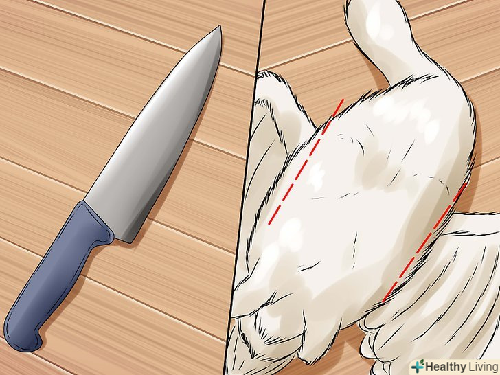 Відокремте одне або обидва крила, якщо вони вам не потрібні. Переріжте кусачками суглоб, за допомогою якого кріпиться крило, як можна ближче до тіла. Потім використовуйте гострий ніж для того, щоб провести уздовж суглоба і відокремити залишилася шкіру, що з'єднує крило з тілом. Потім виконайте те ж саме з іншим крилом.- В якості альтернативи ви також можете обрізати крила в області середньої частини суглоба прямо там, де закінчуються довгі пір'я, якщо ви хочете зберегти верхню сполучну тканину між крилом і тілом. Там не так багато м'яса, але воно все ж є. Якщо ви хочете це зробити, переріжте суглоб, потім пройдіться своїм ножем уздовж крила, в сторону пташиної «пахви».