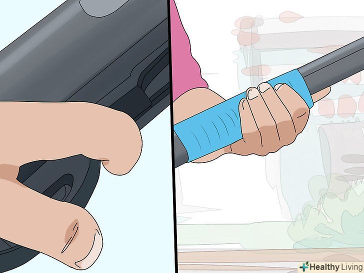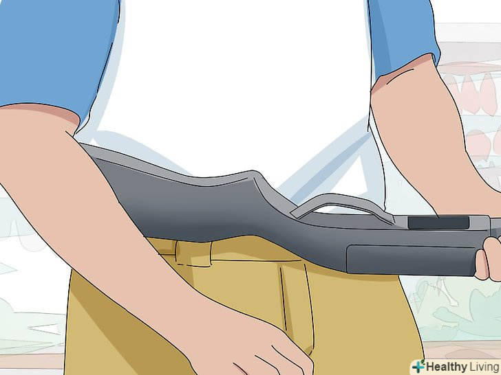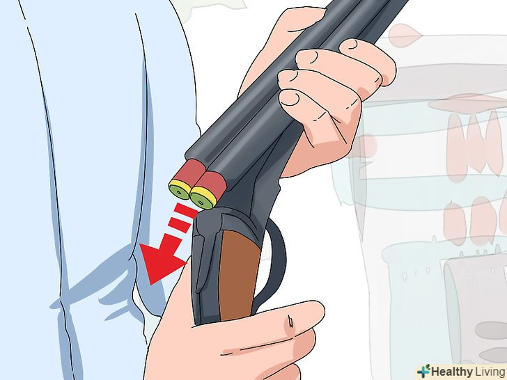 Поставте п'яту приклада на стегно, коли сидите. Ви також можете затиснути приклад рукою, направивши стовбур в сторону. Переконайтеся, що спусковий гачок і скоба спускового гачка спрямовані від вас.