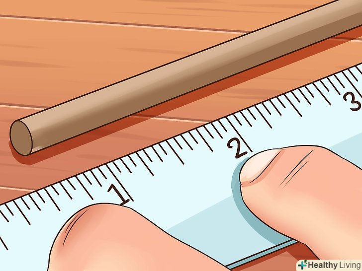 Виміряйте довжину. мірилом або лінійкою виміряйте дистанцію між намальованою лінією і тим кінцем шканта, який ви вставляли в стовбур.- Ця довжина і буде дорівнює довжині стовбура гвинтівки.