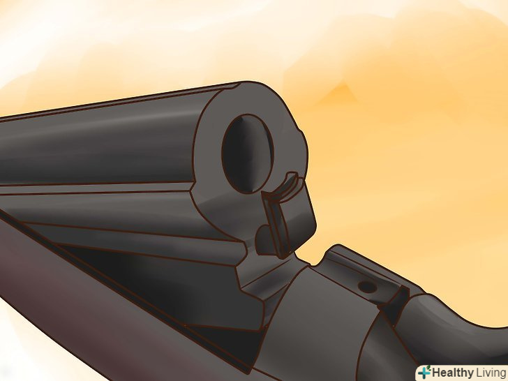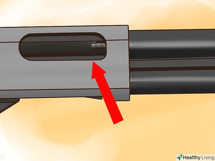 Вийміть патрони. навіть якщо ви впевнені, що дробовик не заряджений, ви все одно повинні виконати процес його розрядки, щоб переконатися, що під час обміру ствола всередині дробовика точно не було патронів. [5]- Направте рушницю в безпечне напрямок і переверніть його. Знайдіть важіль, який рухається вгору і вниз біля ствольної коробки. Цей важіль також відомий як Підйомник.
