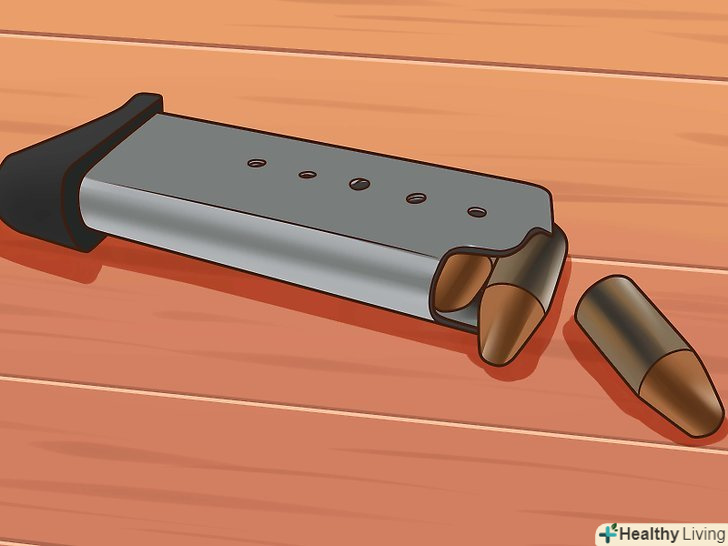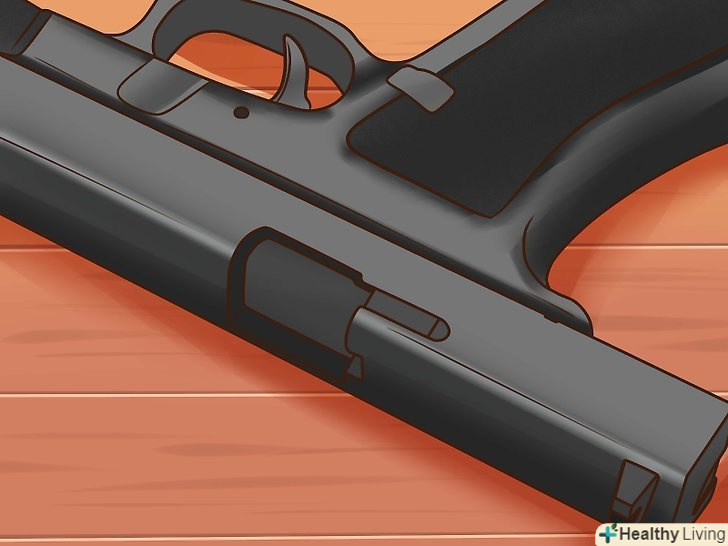 Розрядіть пістолет. дістаньте обойму і витягніть наявні всередині патрони.- Візьміться за пістолет домінантною рукою і направте його в безпечне напрямок. [3]