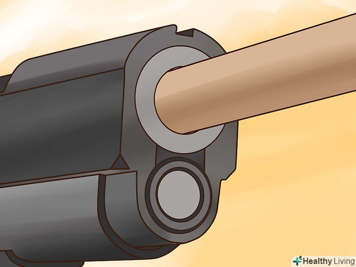 Вставте в стовбур шкант. вставте шкант в барабан пістолета, поки він не торкнеться лицьової або передньої частини патронника. [2]- Діаметр використовуваного шканта повинен бути меншим за діаметр стовбура револьвера. Не намагайтеся силою вставити шкант, так як цим ви можете пошкодити пістолет.