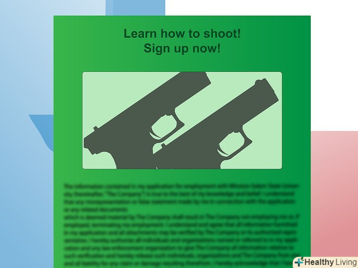 - Отримайте ліцензію на приховане носіння зброї. Вона дасть вам право легально носити з собою зброю. Майте на увазі, що для отримання ліцензії на приховане носіння зброї існують додаткові вимоги.