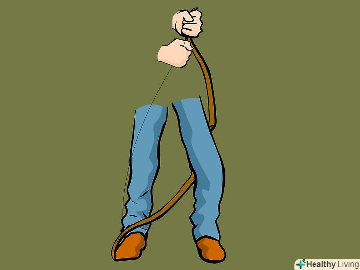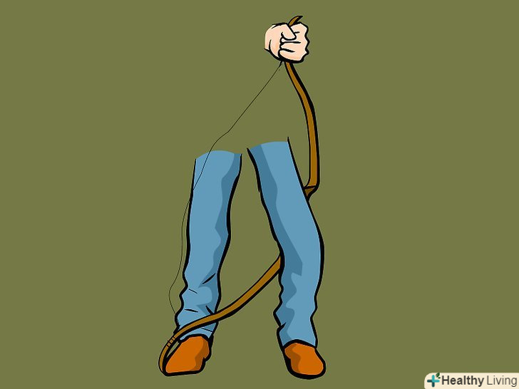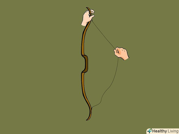 Надіньте петлю тятиви на нижнє плече лука, інший кінець тятиви візьміть в недомінірующую руку.