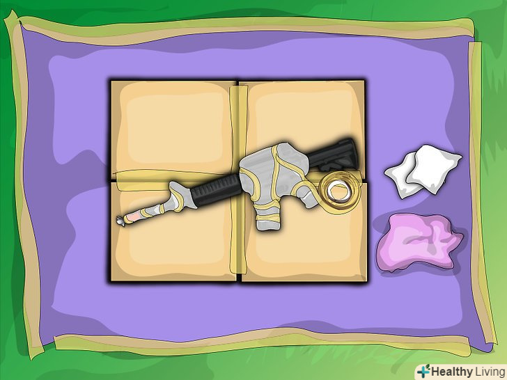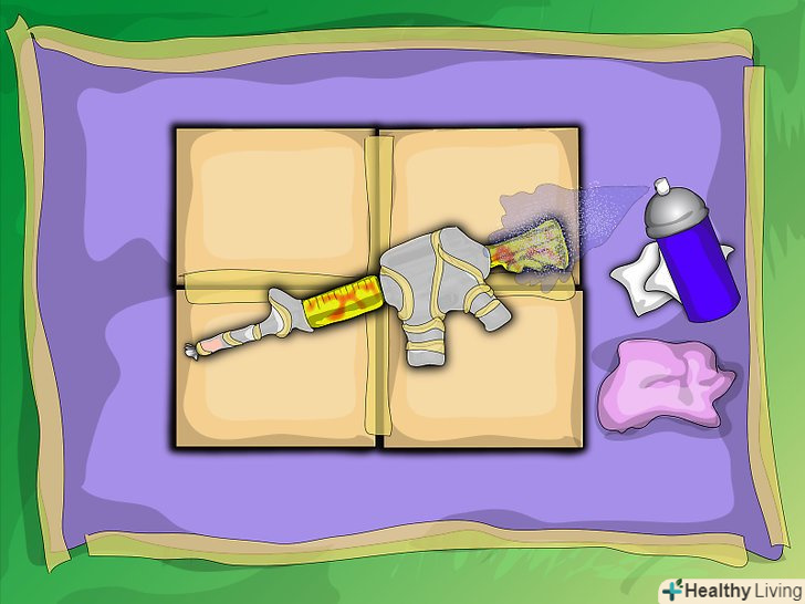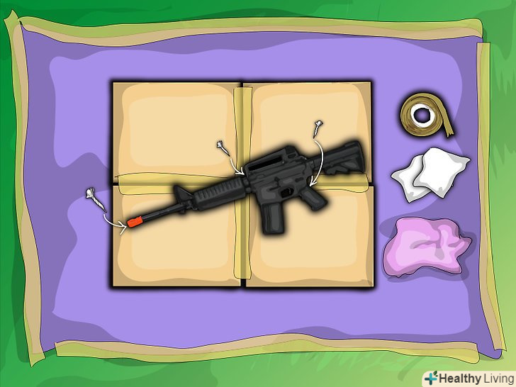 Підкладка. після того, як ви розклали купу газет і приклеїли їх стрічкою, щоб вони не совалися, візьміть вашу картонну коробку і поставте її догори дном. Перевірте, щоб рушниця лежала на коробці і не з'їжджала. Після цього, надіньте окуляри і будьте готові зробити ваше рушницю красивим!