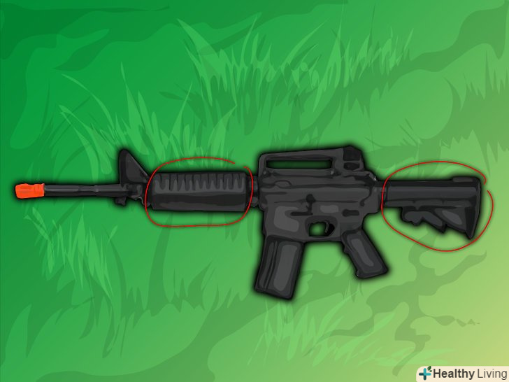 Вирішіть, які частини рушниці ви хочете розфарбувати. можливі різні варіанти дизайну рушниці. Моделі гвинтівок серії M4 і M16 бажано фарбувати повністю, а на снайперських гвинтівках і автоматичній зброї краще розфарбувати тільки пластмасові частини або «рушничні прилади».