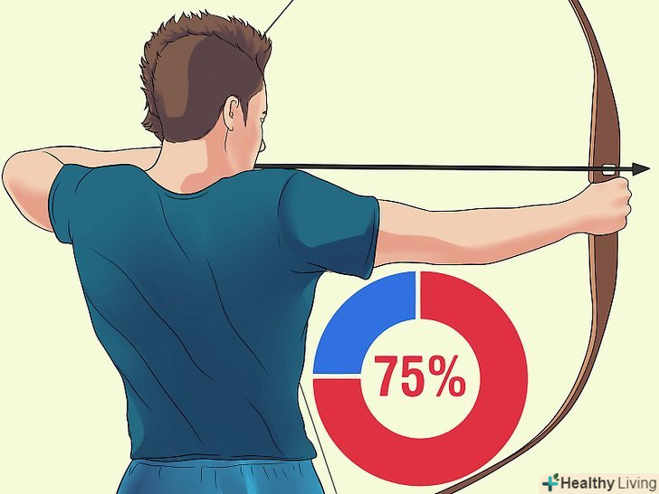 Виберете для себе правильну потужність. Потужність лука – це грамотне співвіднесення ваших зусиль з натягом тятиви. Щоб підібрати ідеальний лук, прикладіть до натягу тятиви близько 75% вашої максимальної сили. [2]- Вибір лука низької потужності сильно вплине на швидкість і силу вашого пострілу – вони будуть набагато менше.