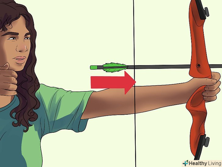 Розслабте пальці, відпустіть тятиву. не робіть ривок тятиви назад, інакше стріла не буде летіти прямо. Відпустіть тятиву так плавно і м'яко, як можете. [19]