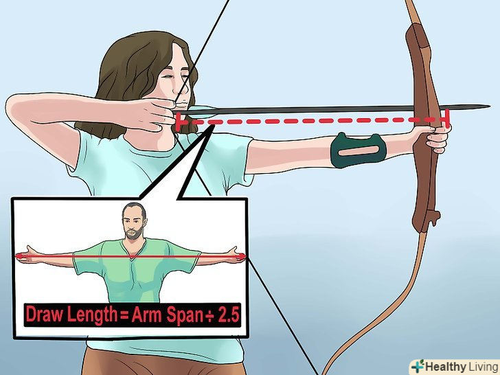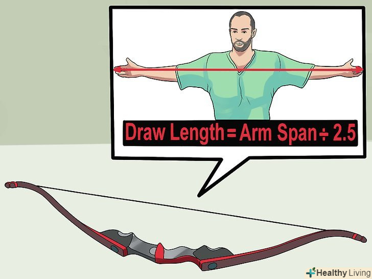 Обчисліть потужність вашого лука. вона залежить від того, скільки зусиль вам знадобиться, щоб випустити зі зброї стрілу. Розведіть руки в різні боки так, щоб вони були паралельні землі. Попросіть когось змінити точну відстань між вашими середніми пальцями. Це відстань і буде показником потужності лука. [5]- Ідеальна довжина стріли буде на 1-2 дюйма більше, ніж показник потужності лука (теж в дюймах).